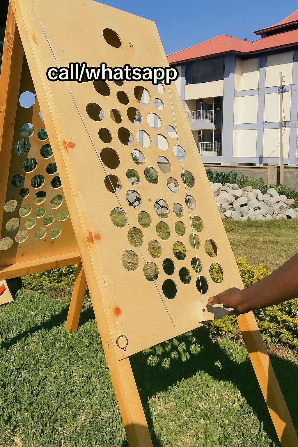 Four-in-a-row strategy game with giant wooden frame